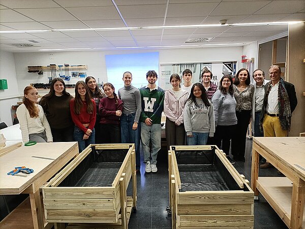 Gracias a la colaboración entre ambas instituciones, el alumnado ha fabricado durante un semestre ambos huertos urbanos de madera como parte de un proyecto formativo “pensando que podrían ser de gran utilidad para las personas mayores del centro que cuiden de ellos” afirma su profesor Federico de Isidro, “por lo que cuentan con un diseño práctico y funcional, con ruedas, adaptado a la altura de pacientes y residentes” añade.