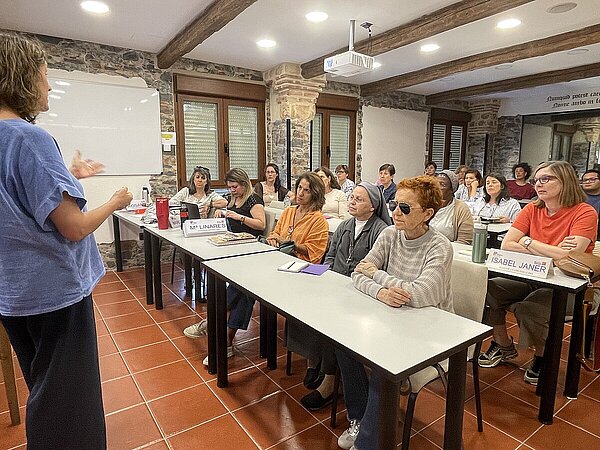Claustro que ha realizado una dinámica por equipos propuesta por Felicidad Vicente, coordinadora de Posgrados, quien les ha dado la bienvenida y alentado a “trasmitir desde la docencia el modelo de humanización de los cuidados, ya sea desde el Counselling, la Intervención en Duelo, los Cuidados Paliativos Multidisciplinares, la Gestión de Centros o la Pastoral de la Salud”.